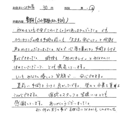 術後も「形がキレイ」とみなさんにほめていただいて、とても満足しています。