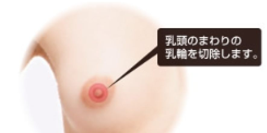 内側の乳輪と外側の正常皮膚の境界に一周するような傷跡は残りますが、時間とともに目立たなくなり、また乳輪の色調差に紛れてほとんどわからなくなります。