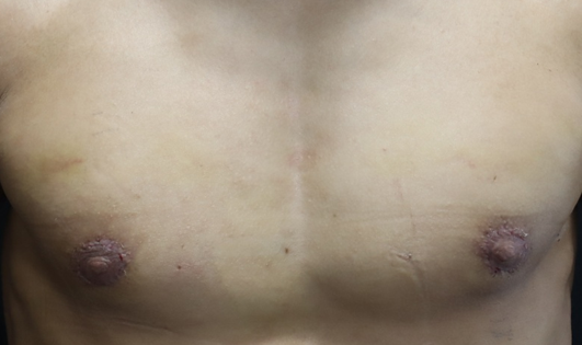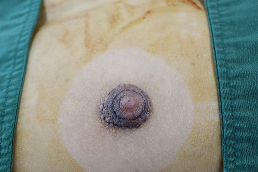 ↑術前のドーム状に乳輪が膨らんだ状態(男性の乳輪・乳頭です)