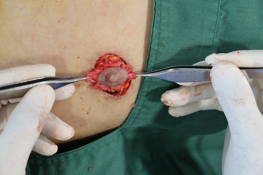 2.乳輪周囲の剥離と真皮弁の固定