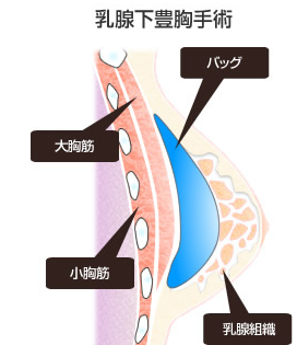 乳腺下法(乳腺下にバッグを挿入)