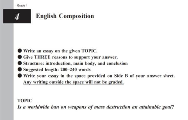 上記、1級の英作の問題ですが、「大量破壊兵器を世界的に禁止することは実現可能か?」を200~240単語でエッセイ形式で書きなさい、という問題です。