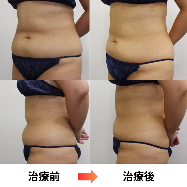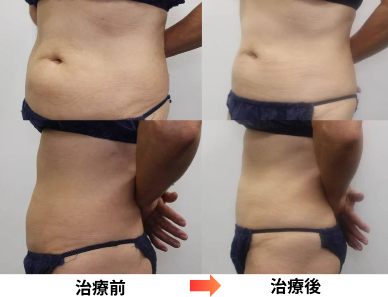 体重は大きく変わらなくても、お腹の部分痩せ効果で見た目のシルエットが大幅改善した症例です。
