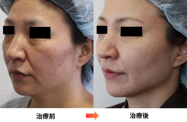 施術3ヶ月後にはフェイスラインがシャープになり、ほうれい線やマリオネットラインの軽減、頬の位置の引き上がりなど複数の改善が見られます。
