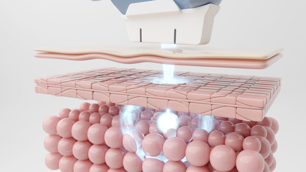 まずウルセラ(ウルセラシステム、ウルセラピー)とはどのような治療か簡単におさらいしましょう。ウルセラとは高密度焦点式超音波(HIFU)を用いたたるみ治療機器で、メスを使わずに肌の深部からリフトアップを行う施術です。特に皮膚のさらに奥にあるSMAS層(顔の筋膜)という部分まで超音波エネルギーを届けられる点が特徴で、この深部に熱エネルギーを与えてコラーゲン線維を収縮させ、たるみを引き締めます。