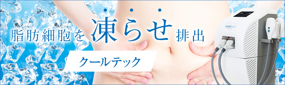 メスを使わずに脂肪細胞を凍らせて除去する痩身治療機クールテック。1回の治療で同時に2箇所を治療でき、広範囲の治療が可能です。
