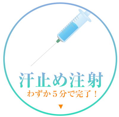 手術ではなく注射だけで汗を抑える方法です。医療レーザー脱毛と併用すると更に有効です。