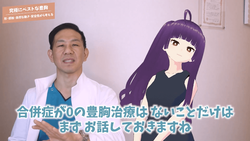 元神先生:はい!究極のいい豊胸、難しいですね。豊胸治療というのはすごく色々な治療法があるんですけれども、どれもそれなりの副作用とか合併症は起こり得るので、合併症が0の豊胸治療はない事だけはまずお話しておきますね。その中でどんな治療があるか、おすすめの治療があるかというのは今回話していきますね、では。