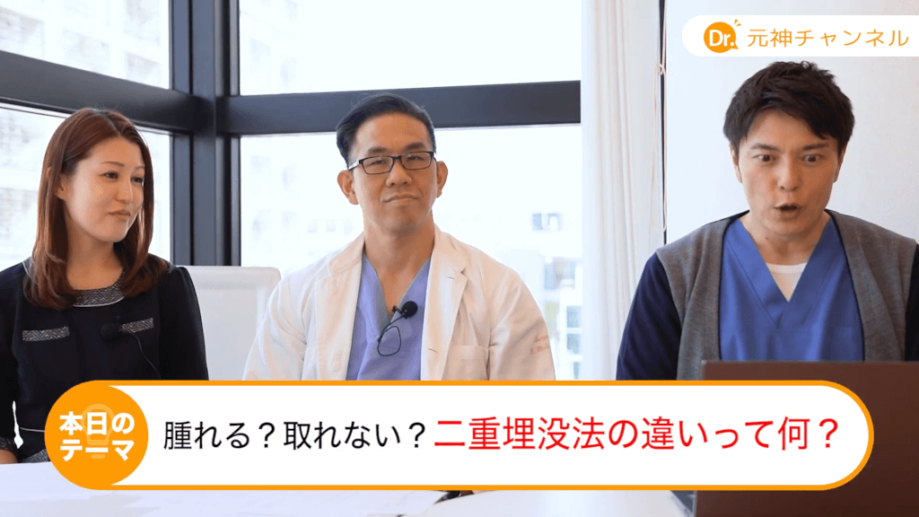 元神先生:今は腫れない手術が主流らしいですよ。僕も腫れない二重の手術の方法もできるんですけど、そうするとやっぱりリスクはありますよ、外れるリスクがね。それを考えてあんまりすすめたくはないなというのはありますけどね。