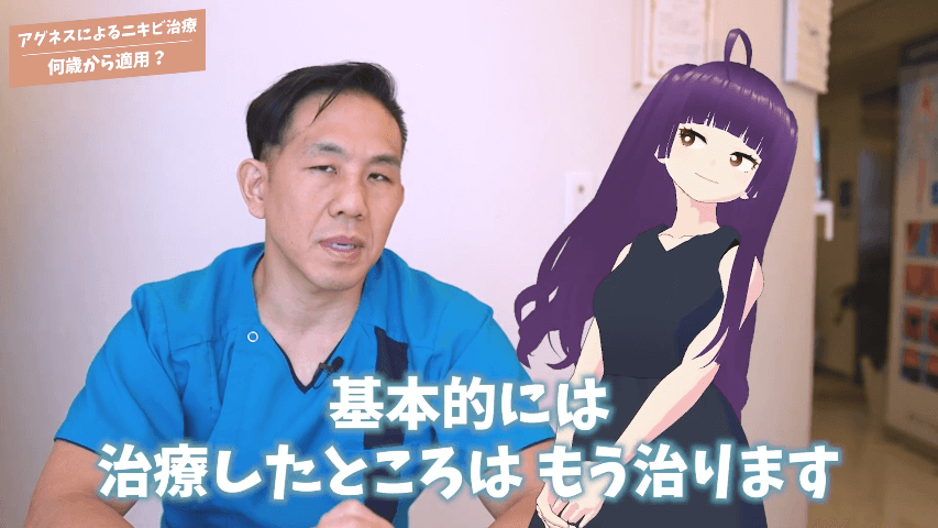 元神先生:アグネスに関して言いますと、基本的には治療したところはもう治ります。そこから同じ状態のニキビはできないですね。