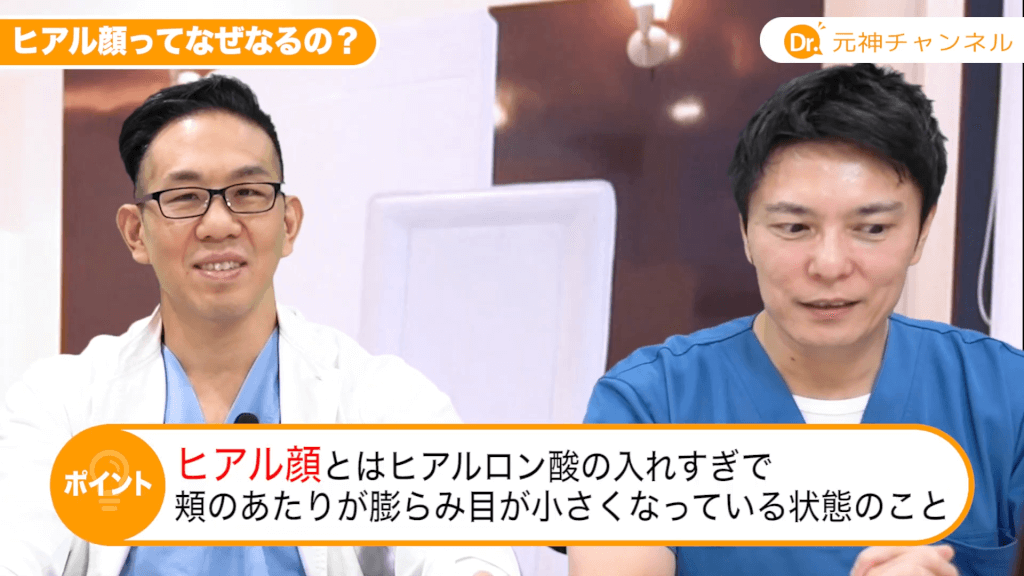 元神先生:ヒアルロン酸を入れすぎたという事ですよね。入れすぎた結果、頬がパンパンになったり、頬が入れすぎてる事によって目が小さくなったような感じが1番多いですかね。