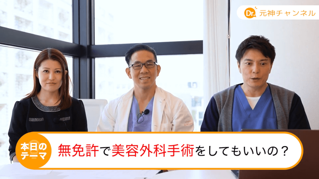 司会:元神先生、今回は無免許で美容外科手術をしてもいいの?について先生に伺って参ります。どうですか?