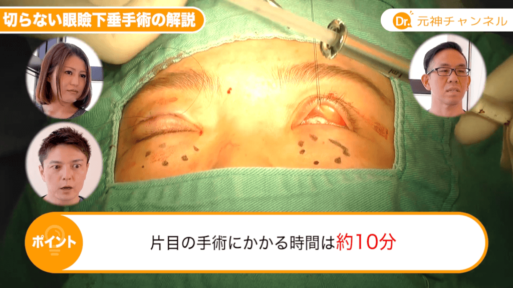 元神先生:そうですね。手術時間は2倍くらいかかりますけれども。腫れとかは手術後の経過は埋没法と何も変わりありませんね。