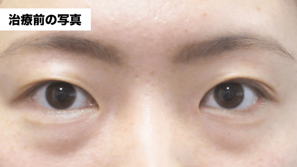 萩原:今回は切らない眼瞼下垂の元神先生の実際の手術動画をご覧いただきながら、元神先生に治療の解説をして頂きます。よろしくお願いします。動画を4倍速で見て頂きながら解説をお願い致します。治療前の状態の写真はこちらです。