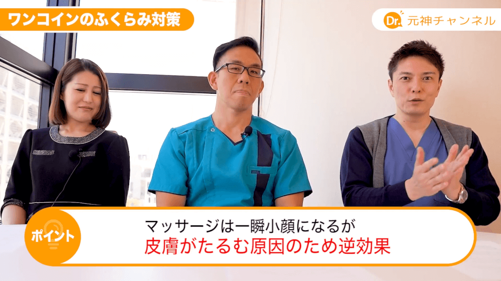 元神先生:基本的には絶対ないです。リンパマッサージとかに行ってマッサージで小顔になったというのはよくありますけれども、確かに圧をかけてリンパをよくするとむくみが取れるので一瞬小顔にはなるんですよね。そんなの数時間とか半日しか持たないです。元に戻っちゃう。結果的にはマッサージによって余計に皮膚が伸びますので余計にたるみになりますから。