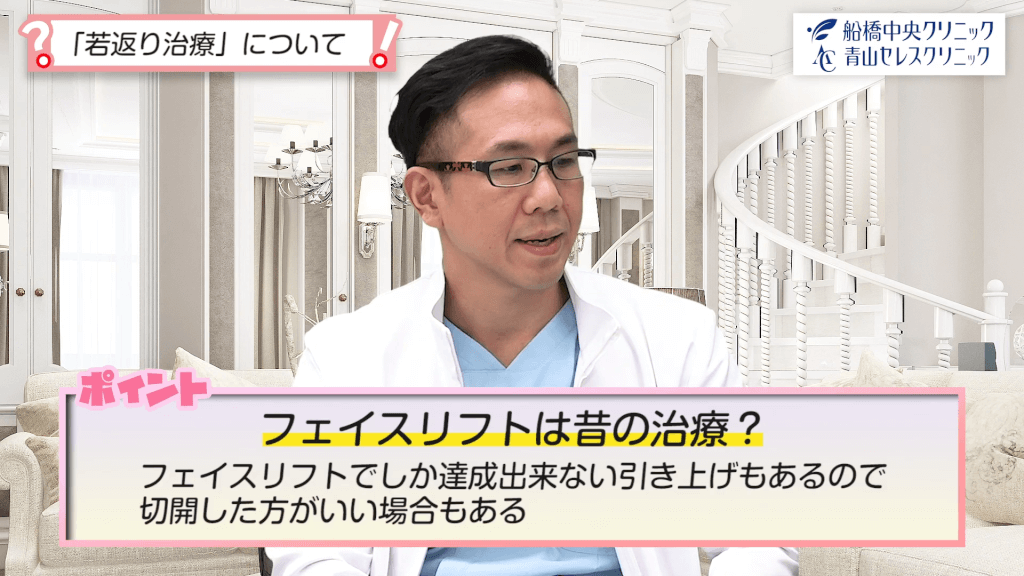 高橋:ではたるみが進んでフェイスラインが下がっている場合というのは切る手術のフェイスリフト手術が1番ベストでしょうか?