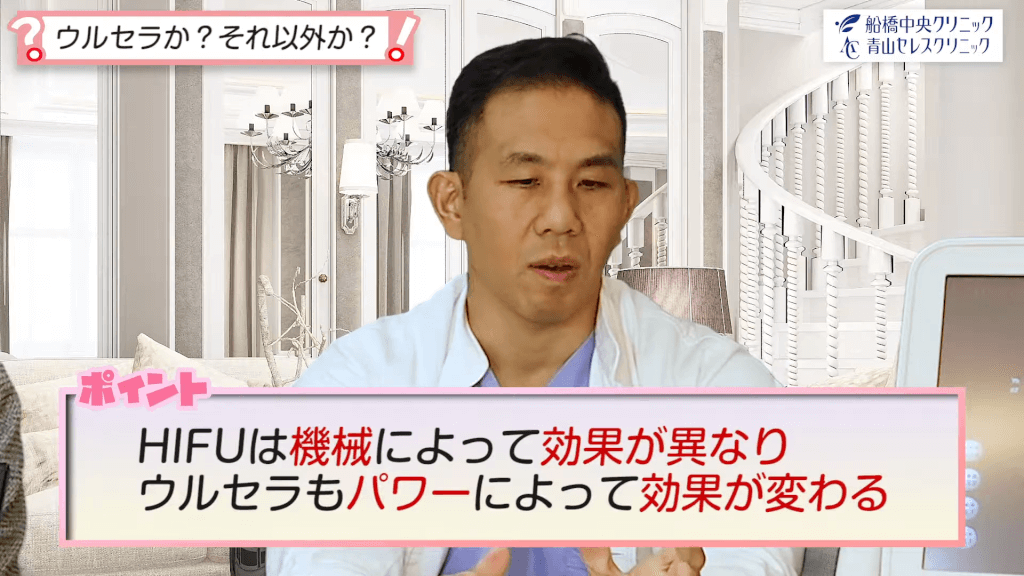 高橋:元神先生はウルセラのシステム、ウルセラのみを使っていますが、他のクリニックでは様々なHIFUの機械があります。料金も様々ですが、一番の違いは何ですか?