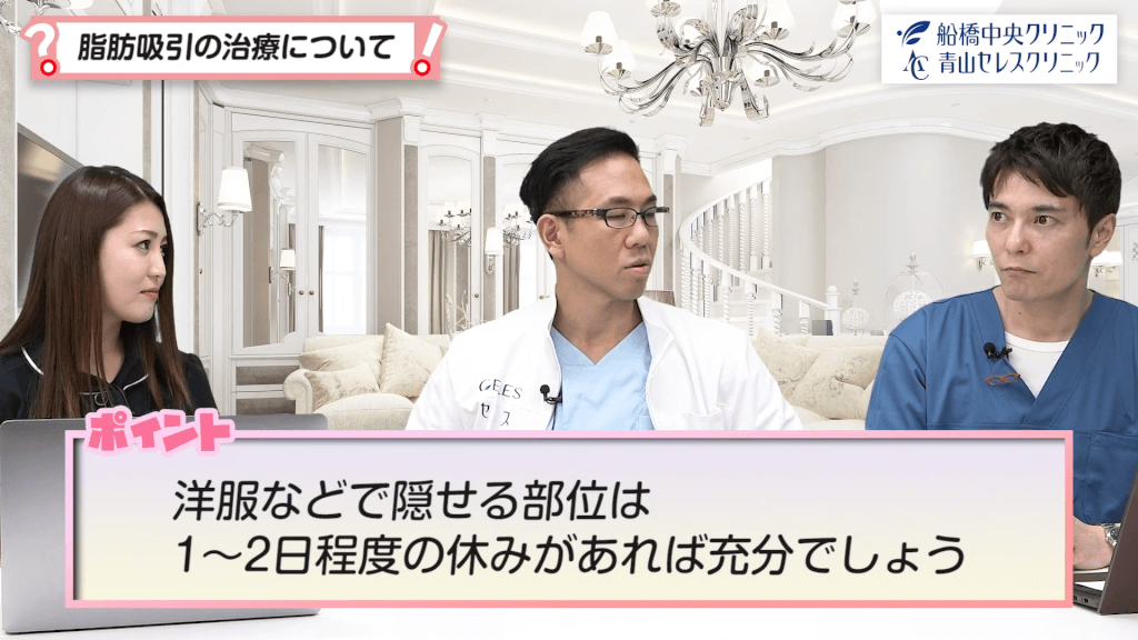 司会:なるほど。1~2日くらいということだったら安心ですね。分かりました。では先生、最後に脂肪吸引についてまとめの一言をお願いします。