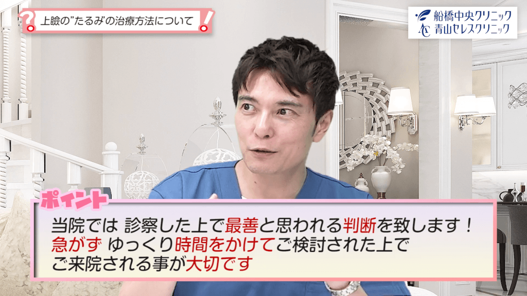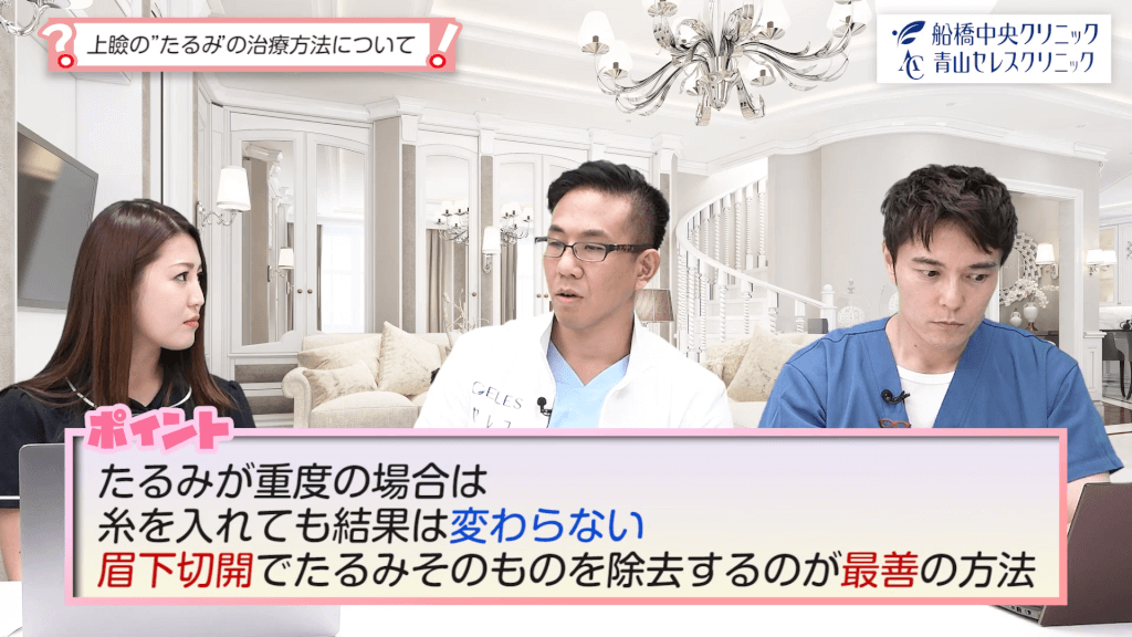 高橋:先生、上瞼のたるみがある場合、どういった治療方法があるんですか?